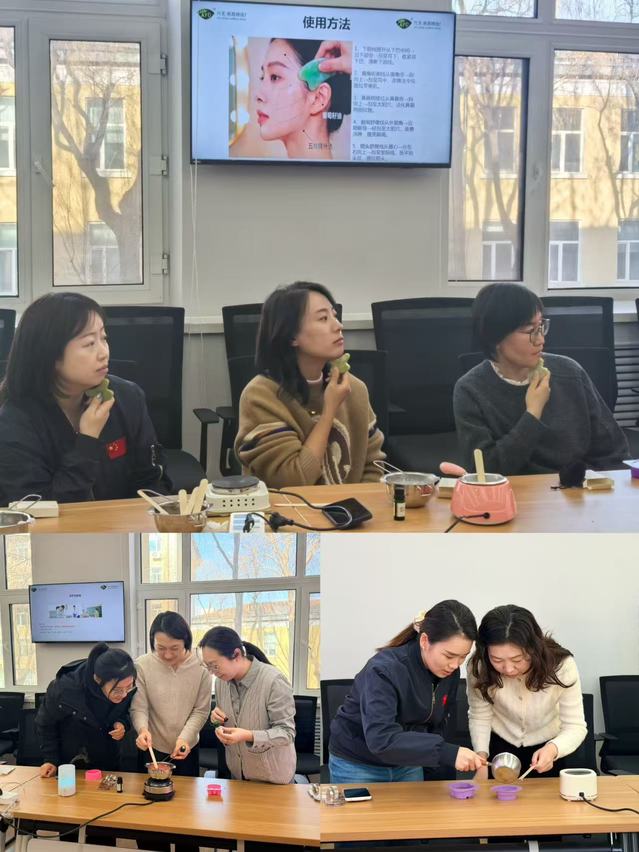活动邀请专业芳疗师讲解精油的功效与日常用法,并详细介绍香皂的制作原理与步骤。在芳疗师指导下,女教师们亲手调配原料、挑选心仪的精油和模具,将创意与巧思融入手中的皂基。经过融化、搅拌、注模、冷却凝固等一系列过程,制作出一块块独一无二的精油香皂,体验手工创作的乐趣。现场还演示了精油面部刮痧的养生手法,帮助教师舒缓压力、放松身心。