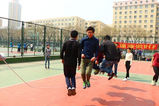 学生会体育部和1302403团支部联合承办,学院各小班团支部报名参赛。每组有两次尝试机会,每次两分钟,从跳的人数达到三个开始计数,两次成绩取最高来决定名次。赛前同学们争先练习,比赛的时候同学们明确分工,积极配合,摇绳的同学和跳绳的同学都努力地配合队友的节奏,以取得更好的成绩,充分体现了同学们分工合作的团队精神。