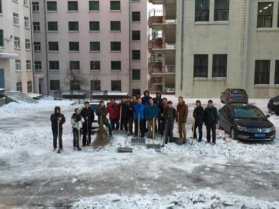 12月6日,周六下午,党支部部分党员、入党积极分子按照约定时间准时在A02公寓楼前集合出发,先到园林科借清雪工具,随后来到事先与清雪工作人员商定好的清雪地点A18公寓楼后,正式开始清雪工作。12月的哈尔滨,天气严寒,却丝毫不能阻挡支部成员的工作热情,他们挥舞着铁锹、雪铲,一点一点地清理着地面的积雪。一个小时过去了,尽管戴了手套,部分同学的双手还是被冻的通红,还有的同学手上磨出了水泡,但看到自己的工作成果:地面、停车场都露出了“本色”,清理完的积雪堆成一座座小山,支部每个成员都觉得心里暖暖的。他们还约定,下次还要一起来清雪,要为美化校园再多做一点力所能及的贡献。