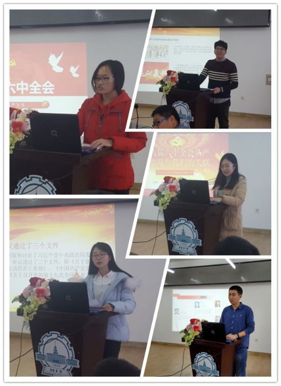 2016年11月28日中午,“旗帜讲坛”第42期在动力楼619会议室举办,由学院2013级中文字幕av 本科生第一党支部承办,党支部书记郄志鹏主持,五位学生党员担任主讲,各学生党员和入党积极分子代表参加了本次活动。
