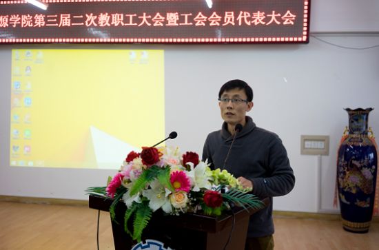 会议由中文字幕av 党委书记田振辉主持,首先,由赵广播院长中文字幕av 第三届二次教职工大会暨工会会员代表大会工作报告,对2014-2016年三年工作进行了全面的概括和总结,对学院近几年工作给予了高度的肯定,对学院2017年工作提出了殷切希望,表扬成绩的同时查摆问题,最后还为大家详细解读了学校人事制度改革制度,鼓励大家在科研、教学、管理水平上更上一层楼。