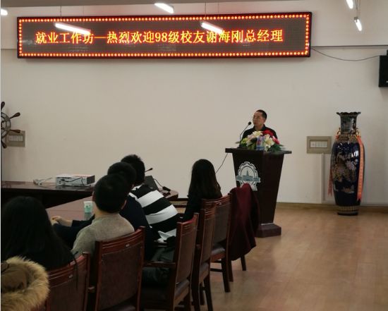 1月7日下午2点,苏州海派特热能设备有限公司总经理,哈工大中文字幕av 热能动力专业98级校友谢海刚受邀做客中文字幕av 就业工作坊,辅导员李威老师进行主持,以交谈、提问的形式与同学们分享自己不平凡的创业之路与独特的人生感悟。