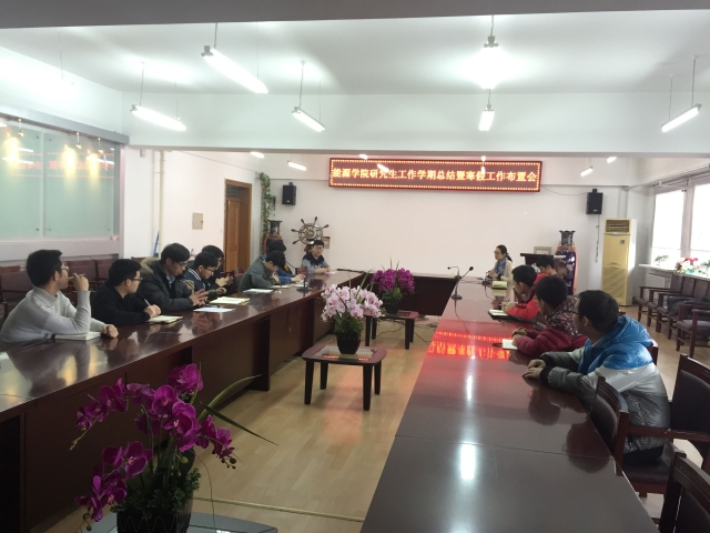 研究生工作学期总结暨寒假工作布置会在动力楼619会议室召开,学院研究生协理员金凤秋主持会议,协理员苏文涛及硕士、博士研究生各班级学生干部参会。