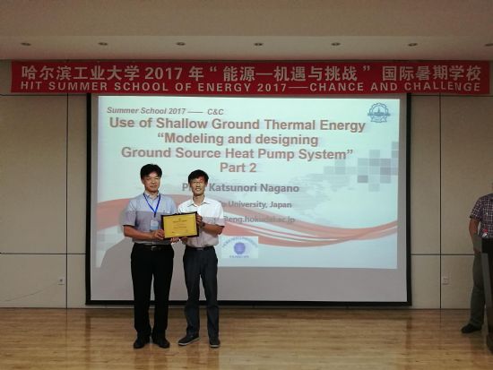 (赵文可/文)2017年7月18日上午,Prof. Katsunori Nagano 为学员们做了地源热泵系统的模型和设计报告。他阐述了地热能的相关应用背景,介绍了地源热泵利用地热能的情况。同时详尽讲解了地埋管的类型以及如何对地下换热器进行建模分析,同时向学员们亲自展示了自行开发的地源热泵性能计算应用软件运行及操作。