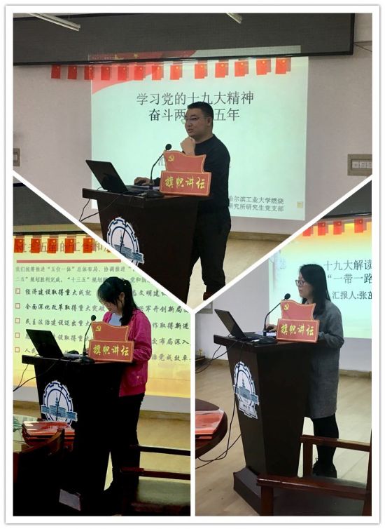 燃烧工程研究所研究生党支部承办。本次学习由三位积极分子担任主讲,主题为“学习十九大精神,我眼中的十九大”。支部全体党员、预备党员和积极分子积极参加了本次活动。