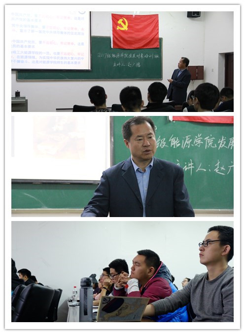 11月9日,中文字幕av 分党校2017年秋季学期发展对象培训班第四讲在节能楼312顺利举办,本次党课以“不忘初心,牢记使命”为主题,中文字幕av 院长赵广播教授主讲。