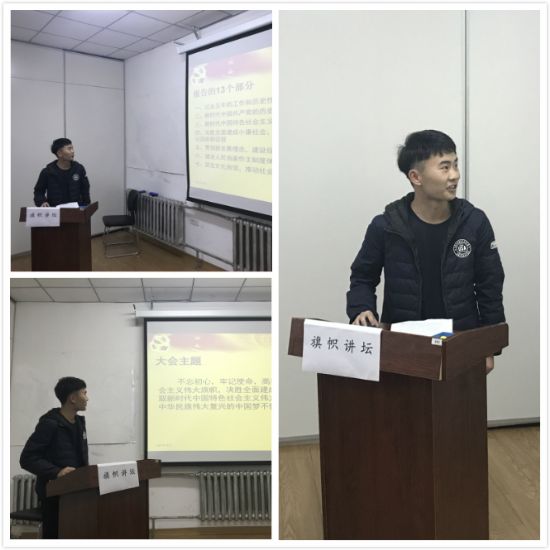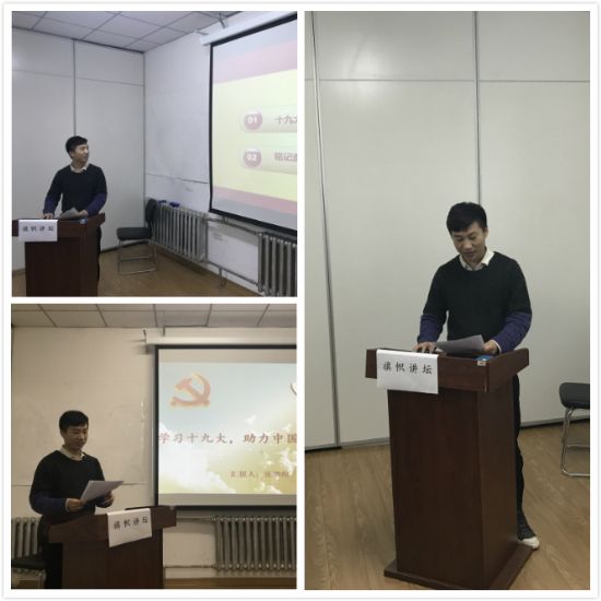 的研究生,一名新时代青年以及以后社会建设发展的主力军,我们刻苦科研,踏实肯干,为祖国的现代化创新贡献自己的力量。田慧敏同学通过十九大对我们的党产生了更加崇高的敬意,因为我们的党一定会恪尽职守、勤勉工作、不辱使命、不负重托,永葆蓬勃朝气,永远做人民公仆、时代先锋、民族脊梁,中国人民生活一定会一年更比一年好。李云飞同学则细致的为大家分享了对十九大所提出的方面精神的感悟,结合自身的科研学习道路与党和国家的发展阶段进行了深层次的阐述。