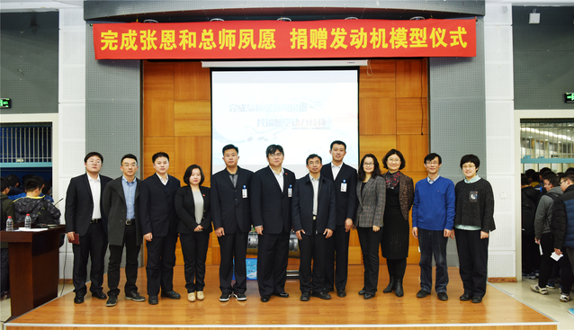 哈工大报讯(金镇江/文 冯健/图)11月13日,在中国航空发动机专家、“太行”发动机总设计师张恩和校友逝世一周年之际,按照张恩和校友生前夙愿,中国航发沈阳发动机研究所党委副书记、纪委书记、工会主席徐庆泽一行来校,将“太行”发动机缩比模型捐赠给哈工大航天馆,并在二校区文体中心为师生作张恩和校友先进事迹报告。校长助理彭远奎与徐庆泽共同为模型揭幕。