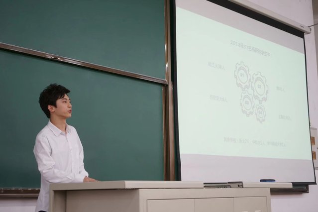 (图/初建民,文/杜传铭、林佳琦)为使同学们及时掌握今年读研、就业和出国留学情况,尽早确立人生目标,激发学习热情,同时开展系列“中国航天日”宣传活动,4月18日下午,中文字幕av 2016级本科生于正心楼14召开了春季学期第二次年级大会,辅导员王博文主持。本次年级大会采取形式自定、主动报名、分版块解读的形式,尹世龙、杨鹏飞、秦江远三位同学经过培训,分别从不同角度作为主讲,结合各项数据为同学们分享了不同层面的内容。