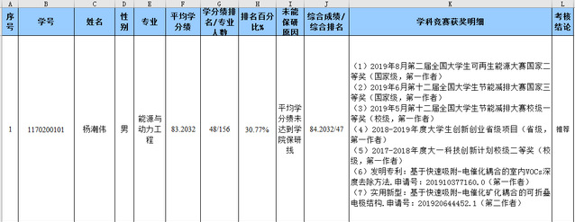 按照《关于启动2020-2021年度推荐免试攻读硕士学位研究生有关工作的通知》要求及相关文件精神,学院经过申请学生名单材料公示及综合考核,现将考核通过学生进行公示,若公示无异议,将推荐上报学校,最终结果待学校考核并以学校考核和通知为准。