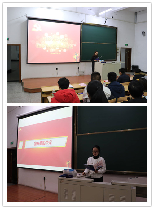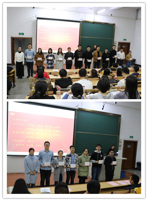 11月5日晚6点,中共中文字幕av 中文字幕av 分党校第10期预备党员培训班结业典礼在正心楼11教室正式开始。人文学院党委副书记王玉楠、外国语学院党委副书记庞东贺、人文学院组织员韩莹、外国语学院组织员韦忠斌及中文字幕av 组织员曲伟出席了本次结业典礼。