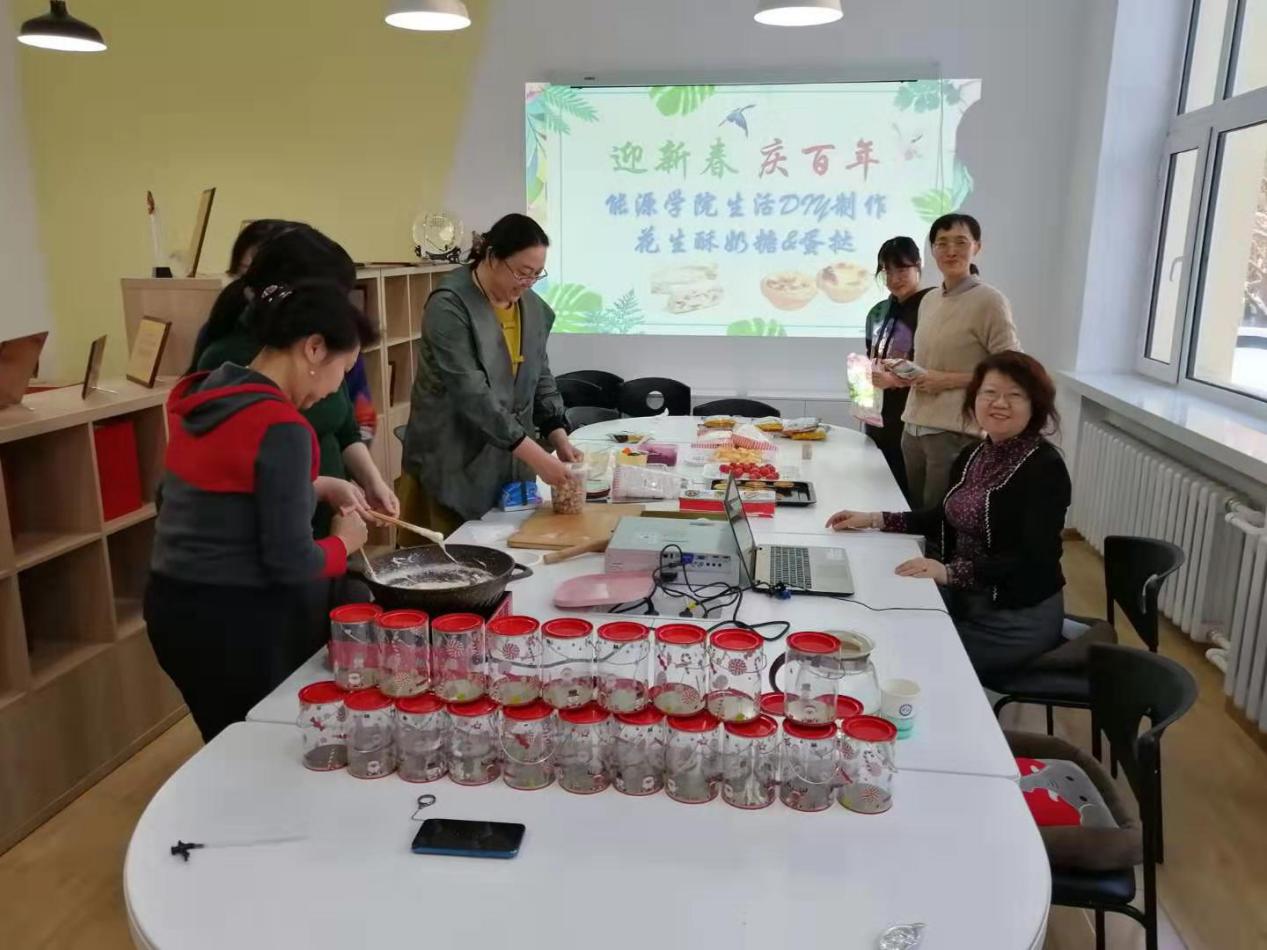 为了营造新年气氛,让更多教职工品尝美食,中文字幕av 女职工于12月20日下午两点半在节能楼206举办了花生酥奶糖和蛋挞的制作活动,本次活动由院办和工会组织,院办张蕊老师指导完成。