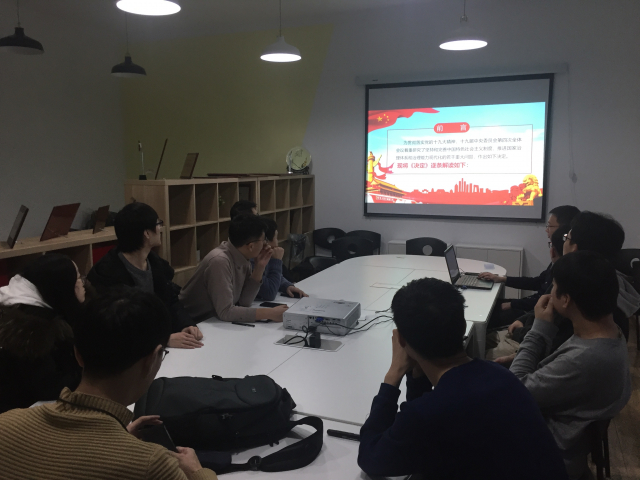 首先,由班级团支部书记宋业琛同学带领大家一起学习十九届四中全会。通过对十九届四中全会内容和制度精彩的介绍,大家对本次全会的主要内容有了清晰的认识,更深刻地了解到了我国发展的现状以及未来的发展方向。接下来是本学期先进个人推荐点赞会,孙尔亮,苏建川,马诗远三位同学分别作自我介绍,分享自己入学近一个学期以来的经历与心得,展示自己入学以来为班级和学院做出的贡献,让大家更全面地认识了自己,也给大家提供了学习的榜样。