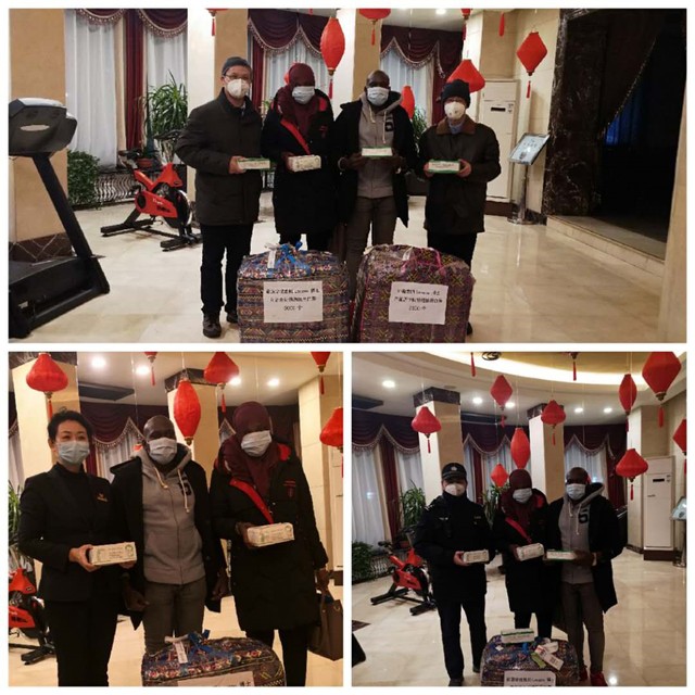 年初以来,我国上下万众一心抗击疫情的动人场面深深感染了来自贝宁的我院外籍师资Guene Lougou Bachirou。他虽远在家乡贝宁休假,却始终心系中国疫情动态。他千方百计利用自己国家(贝宁)的人脉,自费购置了这批口罩。由于担心国际物流不稳定,难以保障货品准时送达,他决定和自己新婚的爱人一起将这些口罩亲自背回哈尔滨。他是这样说的:“在哈工大学习的日子里,老师们悉心培养我、指导我,我很感激母校把我培养成为今天的师资博士后,为母校筹集防疫物资,是我应该做的事。”