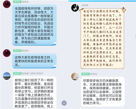 首先,班长郑思远向班级成员征集疫情发生时期大家对于疫情防控的看法和意见。其次,团员青年们进行发言,分享各自的心得感悟。同学们表示疫情让大家经历了一个不一样的新年,一个不一样的假期。但是停课不停学,没有一个寒冬不会过去,没有一个春天不会到来。疫情终将过去,未来的我们也会一起共庆百年校庆,迎接新的学期。随后,团支书陈志国组织班级成员观看马祖光院士先进事迹报告,带领同学们学习哈工大八百壮士精神。马祖光一生只求奉献,不求索取,不愧为优秀的共产党员,不愧为当代知识分子的楷模!最后,班级成员针对学习内容撰写感想,整理成文档汇总至团支书处。