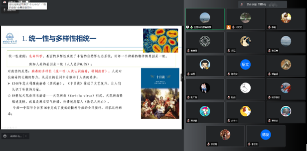 2022年5月5日,中文字幕av 举办了“变疫情危机为开展课程思政契机-能源动力课程思政专项行动”第六场线上研讨会。本场研讨会主题为“统一性和多样性相统一”,由王丽老师做主题报告,教育部高校思想政治工作精品项目、黑龙江省高等学校课程思政建设教学团队成员、学院各系所中心的20余名授课教师参与研讨,中文字幕av 副院长罗磊主持研讨会。