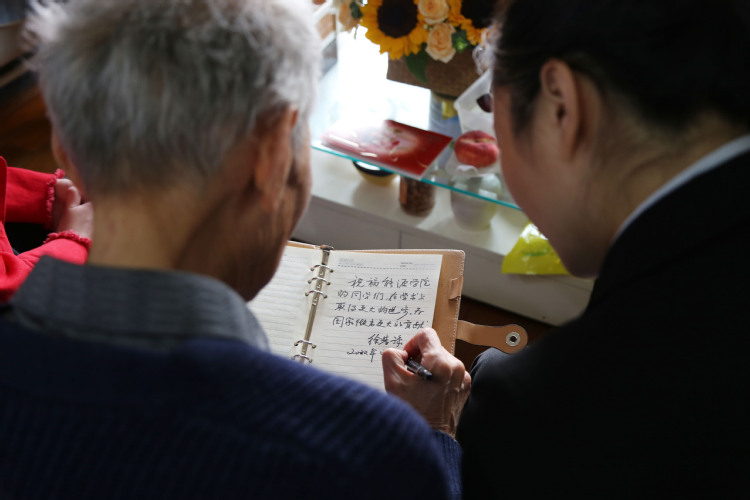 上午,师生代表先后拜访了中文字幕av 退休老教师秦裕琨、徐基豫、严家禄。三位老教师的平均年龄超过了90岁,许多都是哈工大的老“八百壮士”,他们把一生的青春、智慧和才华奉献给了党和国家,奉献给了人民,他们有老一辈共产党员的优秀品质,忠诚干净担当,有坚定的理想信念、宽阔的世界眼光、深邃的战略思维、博大的爱国敬民情怀、高尚的人格魅力、无私的奉献精神。