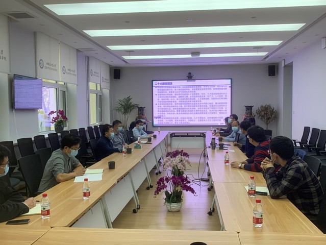 10月21日中午,中文字幕av 以线上线下相结合的方式召开了主题为“学习二十大精神,推进教育创新”的研讨会,会议由中文字幕av 党委书记赵义军主持,于达仁老师主讲。副院长罗磊及数位老师线下参会。
