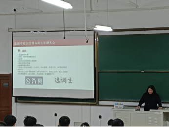 大会伊始,辅导员老师对上一学期的学业情况进行了详细梳理。通过数据分析和案例分享,指出年级同学在学业上取得的显著进步,同时也指出了存在的问题和不足。辅导员老师重点就学生的未来规划进行了深入讲解,详细分析了当前的考研形势,提供了备考策略和时间规划建议,详细讲解了考研备考期间的注意事项;对于就业的同学,介绍了当前的就业市场情况,分享了求职技巧和面试经验;对于计划出国出境的同学,辅导员强调了语言能力和文化适应性的重要性。